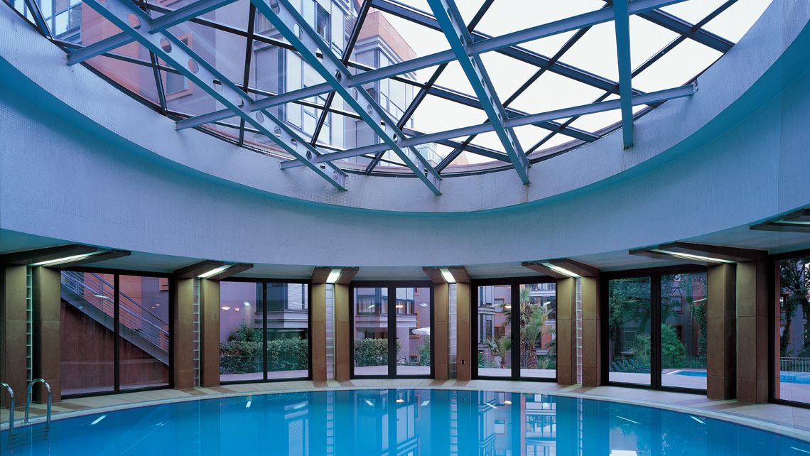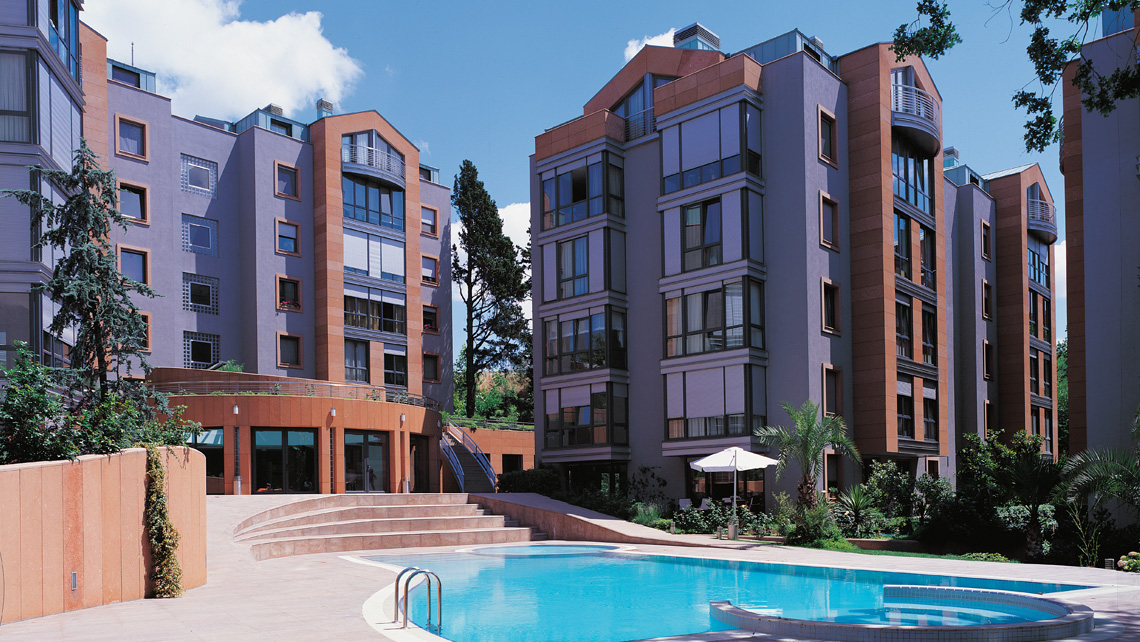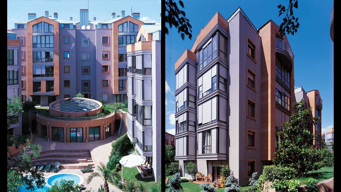Selçuklu Konakları yerleşmesinde; arsadaki mevcut koru parçası zenginleştirilerek, binalar arsa çeperine yerleştirildi. Sosyal tesisler, ana kullanım alanları -salonlar, ebeveyn odaları ve mutfaklar- blokların oluşturduğu iç avluya baktırıldı. Bu iç avlunun biçimsel öğelerini, binaların kristal geometrisine kontrast daire formlu birimler ve üç boyutta her şeyi bağlayan serbest eğrisel bir iç bahçe duvarı oluşturdu.