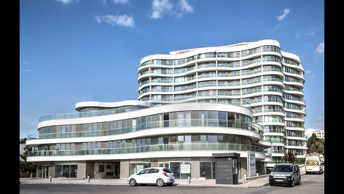 Kompleksin tasarımı blok ve yükseklik olarak verilmiş imar sınırları içinde şekillenmiştir. Konut bloku konut çözümleri için fazla derin tanımlanmış olduğundan ortasında bir atrium oluşturarak hem daire birim alanları ölçeklendirilmiş, hem de sıradışı bir rezidans iç mekanı elde edilmiştir. İri, kütlesel imar formu eğrisel balkon hareketleri ve organik formlu cephe kurgusuyla hafifletilmiştir. Aynı şekilde ticaret imarlı alçak bölüm de eğrisel hatlarla ve atriumun içte ve dışta karakter birliği yaratan bir tutumla tasarlanmıştır.