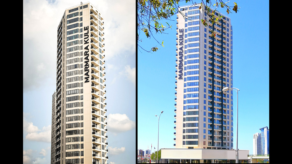 Kulenin kristal formu fonksiyonel çözümleme imkanı verirken bir yandan da E-5 üzerinde ve siluette ikonik bir imaj yaratmaktadır. Ana kule kütlesi ticari fonksiyonlu bir baza üstüne oturmakta; kademeli olarak araziye yerleşerek ortada iç avlu oluşturmakta ve sosyal tesis bloğuyla sonlanmaktadır. Sosyal tesisin formu da kule formuyla diyalog kuracak şekilde tasarlanmış, gece peyzaj içinde ışıldayan bir kristal gibi görünmesi istenmiştir. Ticari bölümün önünde mağazalar için kullanılabilir bir meydan ve açık otopark imkanı sağlanmıştır.