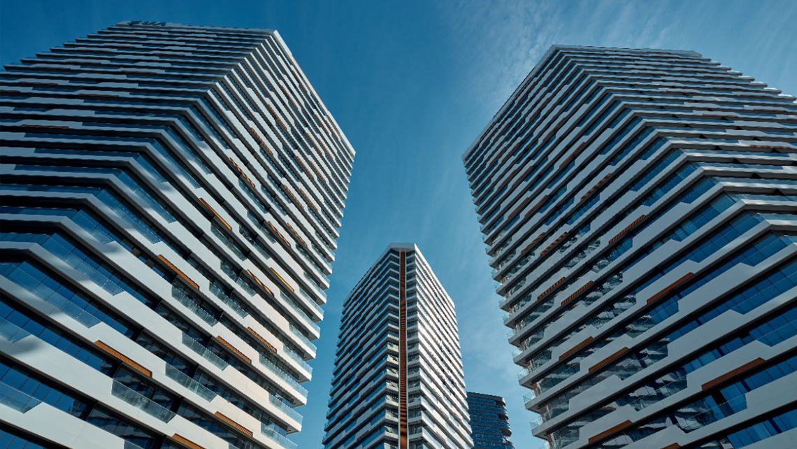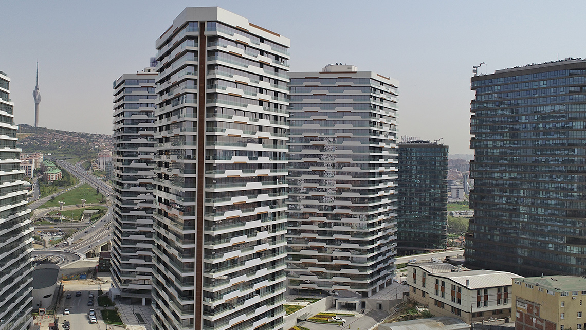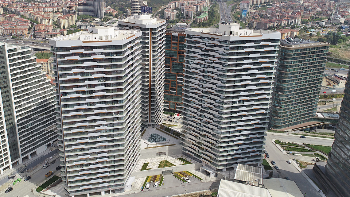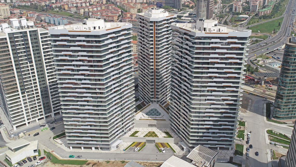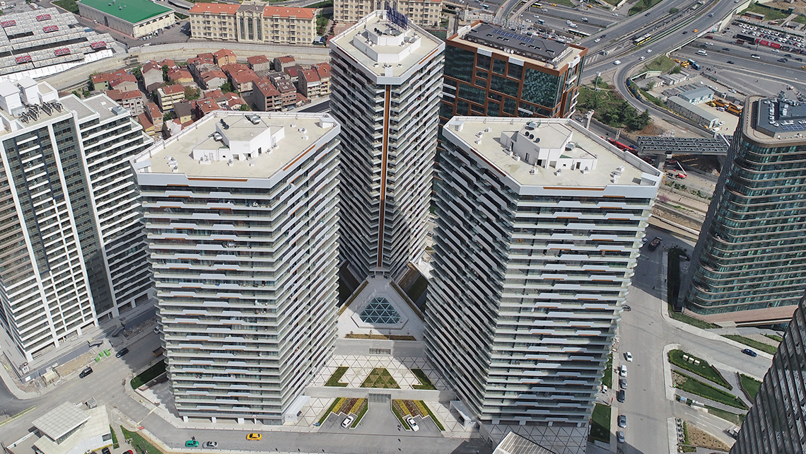 Yerleşmenin tasarımında bir kütle biçiminin içine fonksiyon yerleştirmek yerine, kullanım fonksiyonundan çıkan ,çevre parametrelerini dikkate alan,görsel fonksiyonu da gözardı etmeyen bir tutum izledik.Kütlelerin eşkenar dörtgen prizma şekli biçim kaygısıyla veya tesadüfi olarak değil, özellikle yanyana geldiklerinde birbirlerinin manzarasını kesmeyecek şekilde yerleştirilebilmeleri için seçildi.Böylelikle üçgen bir baza üzerine merkezden ışınsal olarak yerleştirilen eşkenar dörtgen üç prizma ne kadar yakın olurlarsa olsunlar bütün daireler kendi açılarından panoramik manzara görebilmektedir.