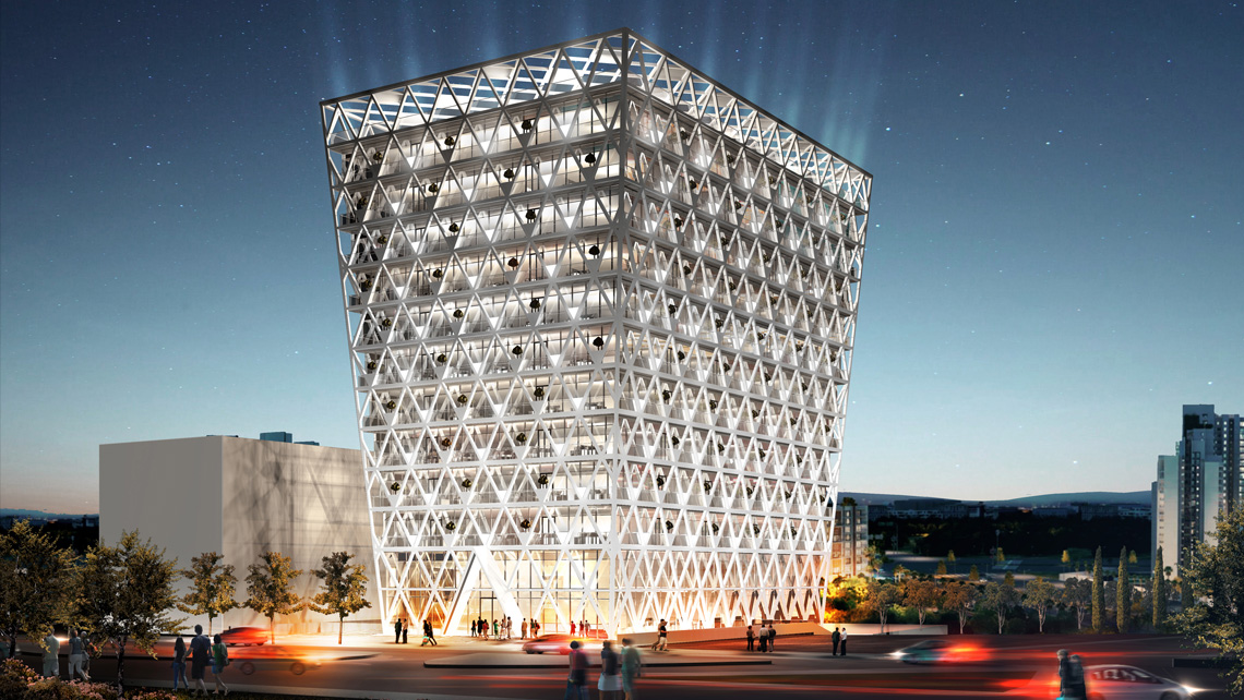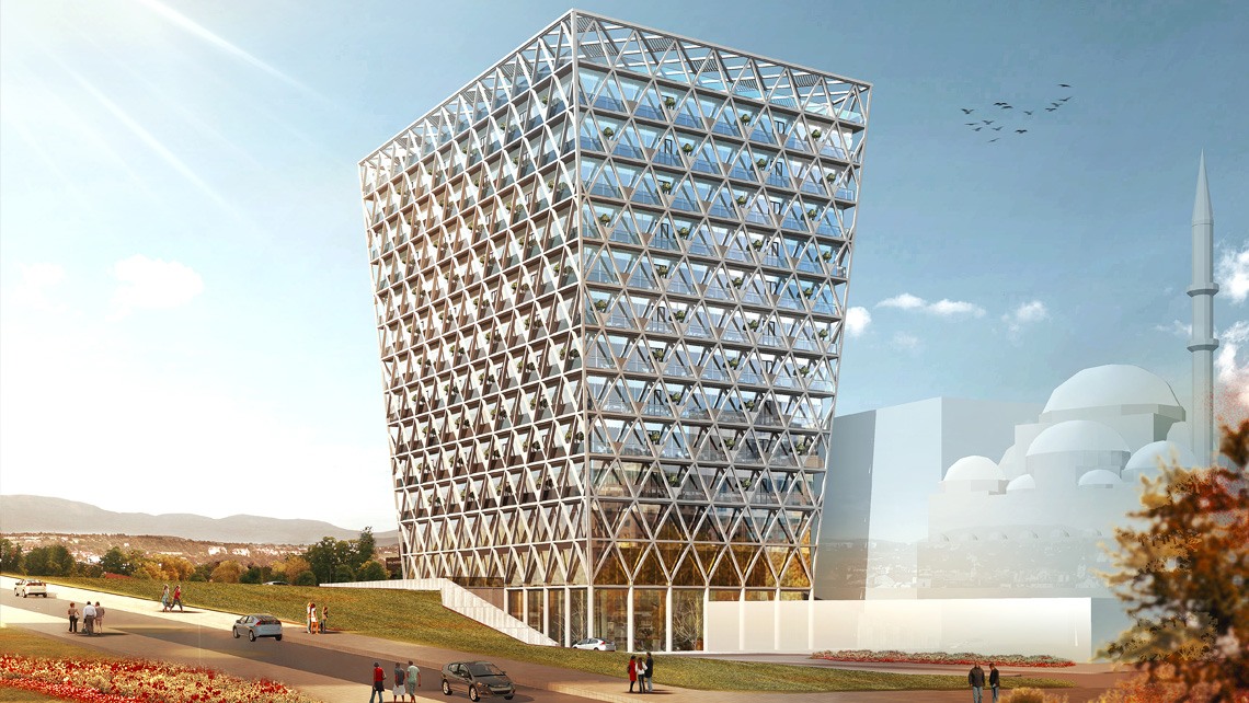 Strüktür sistemi "shell and core"; sirkülasyon çekirdeği betonarme ,döşemeler ve çeper taşıyıcılar yapısal çelik olarak düşünüldü. Çelik kafes taşıyıcı kabuk çatı, çatı pergolası ile bütünleşerek bütün yapıyı sarıyor. Kat bazındaki silikon cepheler içe çekilerek taşıyıcı çelik strüktürle aralarında çepeçevre güneş kırıcılık işlevi de gören french balkonlar oluşturuldu. Cam cepheyi içeri çekmek muhtemel mekan bölüntülerinin cephe görüntüsünü etkilemeden yapılabilmesi esnekliğini sağlıyor. Ana çelik strüktür yapının esas imajını sabit kılabiliyor.