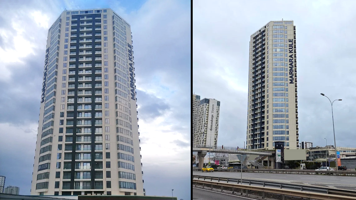 Binanın tasarımında arsanın konumu ve manzara imkanı ana parametreler olmuştur. Kitleyi manzaraya tam yöneltebilmek için manzara cephesini büyütmek üzere kütle ve plan için basık bir altıgen form tanımlanarak panoramik olarak deniz manzarasına yönelim sağlanmıştır. Dolayısıyla bu doğru plan çözümü sayesinde dairelerin %80 e yakını panoramik deniz manzarasına sahiptir. Ayrıca salon, mutfak, yatak odaları yani dairelerin tüm mekanları manzaraya bakmaktadır. Cephelerde tüm pencereler yere kadar cam olarak tasarlanmış, balkon kapıları ve parapetlerde de cam kullanılarak içmekanlardan dışa bakışta görüşü kesmeyen bir düzen kurgulanmıştır.