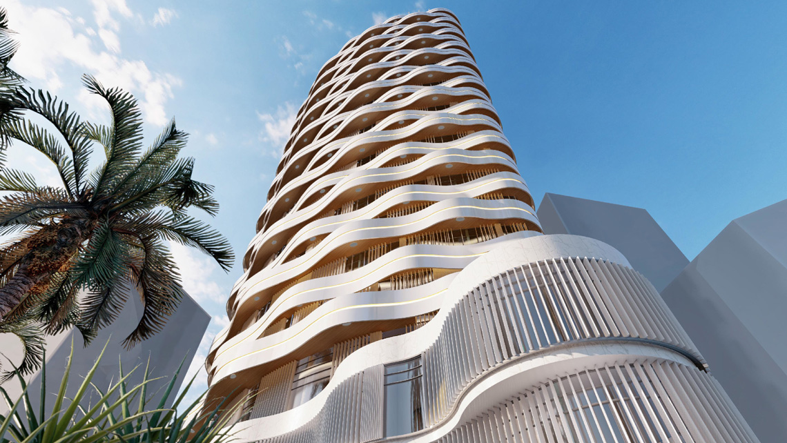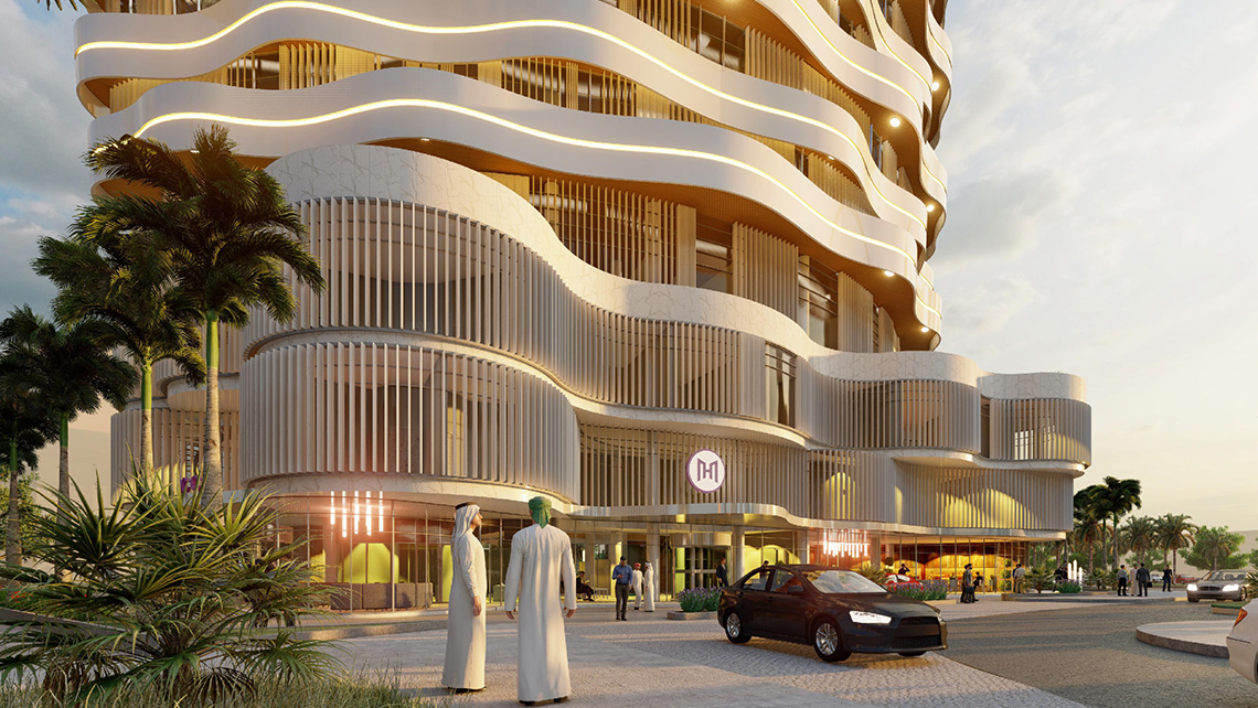At the facade design there are balconies like waves both to differentiate the building from other buildings and to gain functionally shadow surfaces on the facade. On the MACC floors there are moveable vertical louvers to control privacy and visual contact like a lacework. Same louvers are placed only on west and south -west facade to control sun light for the hotel rooms.