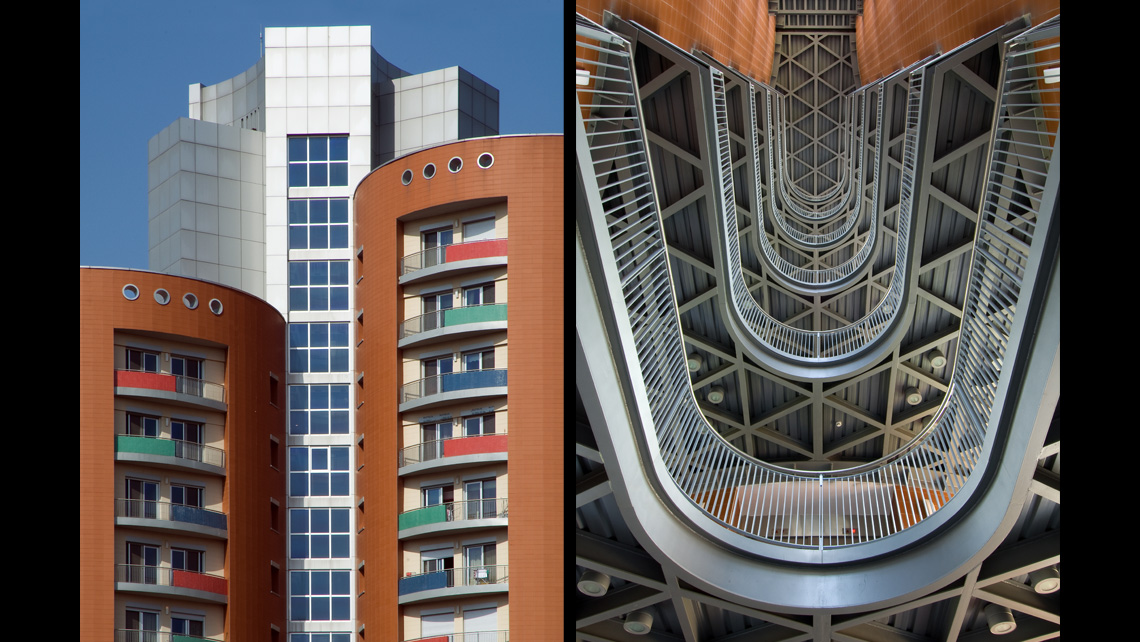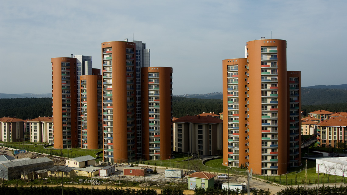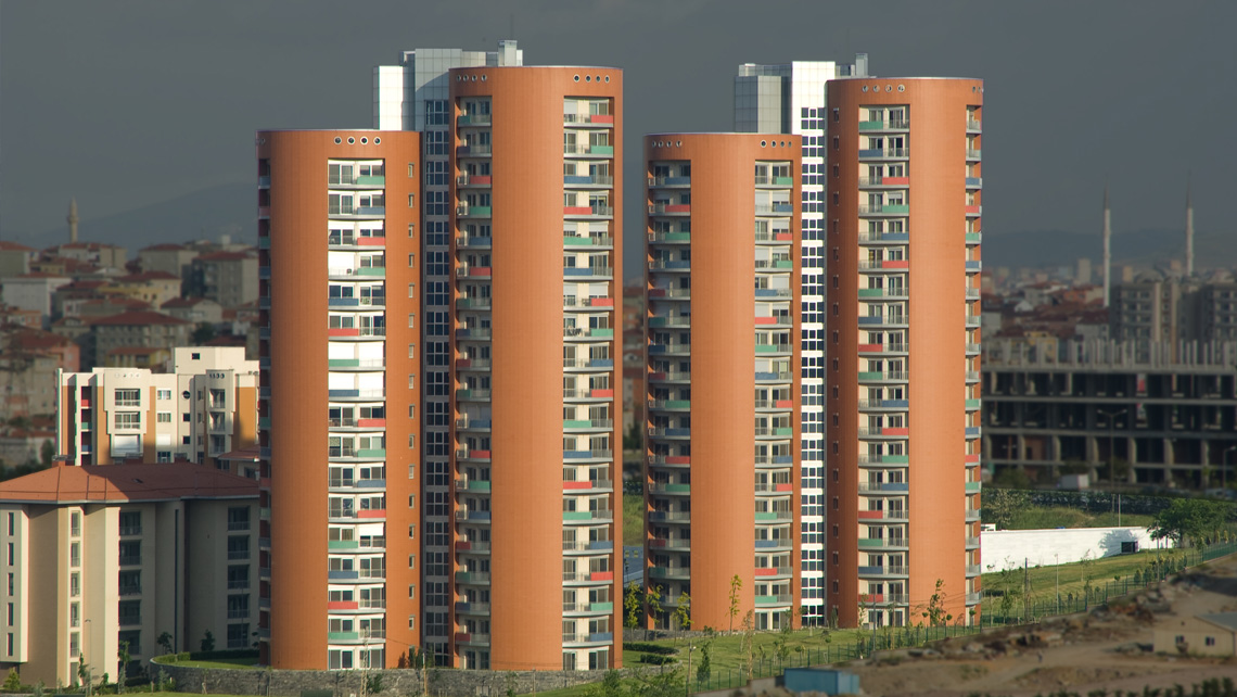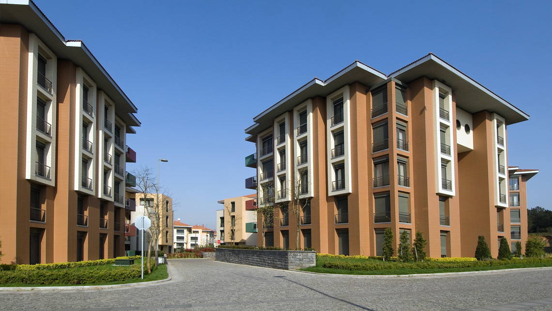 635 Birimlik yerleşmede bloklar hem biçim, hem plan hem de renk olarak, tekrarın tek düzeliğinden kaçınmak, her bloğa tanımlanabilen bir kimlik kazandırmak adına farklılaştırıldı. Yüksek bloklarda katlara işaret eden sekerek değişen farklı renkli balkon parapetleri dairelerin de genel tanımı için kullanıldı.